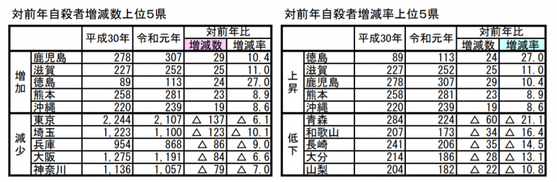 警察庁の自殺統計に基づく自殺者数の推移等(速報値)が発表 産業医の現場から2020年02月01日掲載 警察庁の自殺統計に基づく自殺者数の推移等(速報値)が1月17日付で厚生労働省から発表されました。 警察庁の自殺統計に基づく自殺者数の推移等