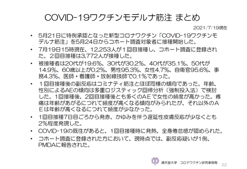 7月21日付で、厚生労働省から、新型コロナワクチン(ファイザー製とモデルナ製)の副反応について発表がありましたので、お知らせいたします。