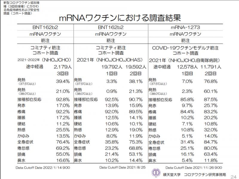 構成労働省から、ファイザー社ワクチン初回接種者に対する 3回目接種後の副反応について発表がありましたので、お知らせします。
