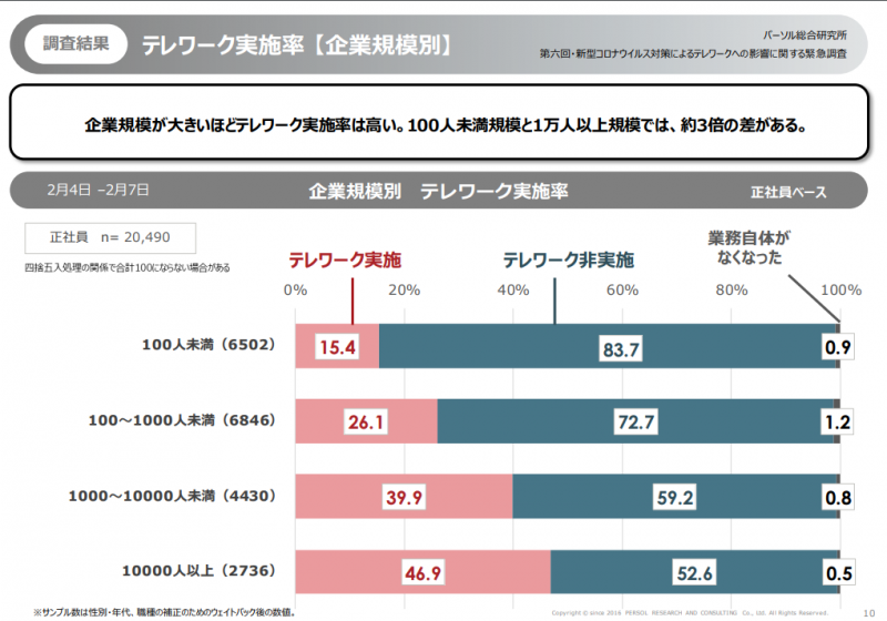 「第六回・新型コロナウイルス対策によるテレワークへの 影響に関する緊急調査」結果 産業医の現場から2022年03月14日掲載 パーソル総合研究所は1日、第6回「新型コロナウイルス対策によるテレワークへの影響に関する緊急調査」結果を発表しましたので、ご紹介します。 パーソル総合研究所「第六回・新型コロナウイルス対策によるテレワークへの影響に関する緊急調査」