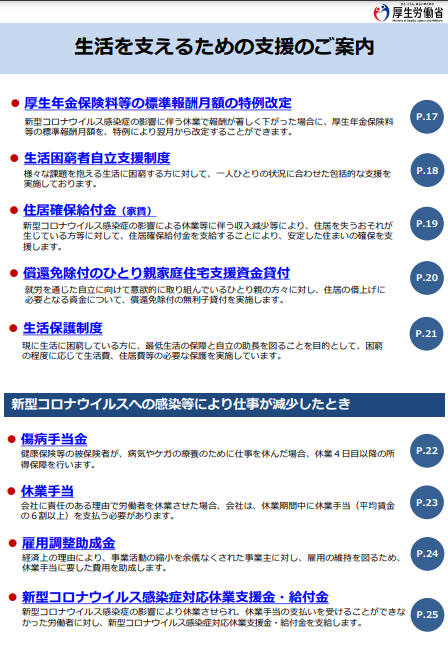 厚生労働省より「生活と雇用を支えるための支援のご案内」が紹介されていましたので、お知らせいたします。