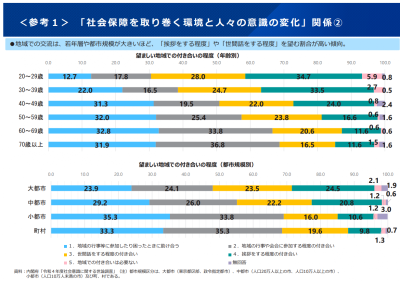 令和5年版厚生労働白書 お知らせ2023年08月02日掲載 厚生労働省から「令和5年版 厚生労働白書」が公表されましたので、ご紹介します。「令和5年版 厚生労働白書」概要 【第1部】テーマ「つながり・支え合いのある地域共生社会」 ● 人口構造や世帯構成等の社会保障を取り巻く環境の変化と、人々の交流に対する 意識等について提示しています。 ● ひきこもりやヤングケアラーなど、制度の狭間にある課題等の現状と取り組みを 整理しています。 ● 上記を踏まえ、ポストコロナの令和時代に求められる「つながり・支え合い」の 在り方を提示しています。 【第2部】「現下の政策課題への対応」 子育て、雇用、年金、医療・介護など、厚生労働行政の各分野について、最近の施策の動きをまとめています。 令和5年版厚生労働白書