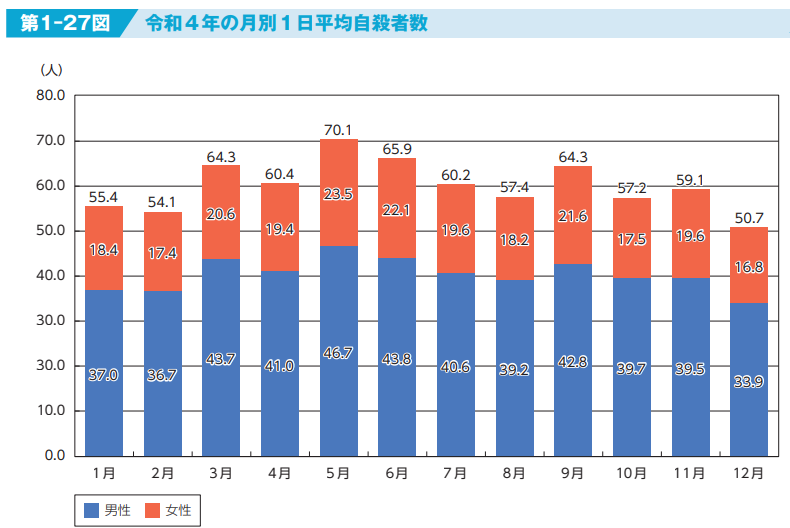 厚生労働省が「令和5年版自殺対策白書」を公表しましたので、ご紹介いたします。