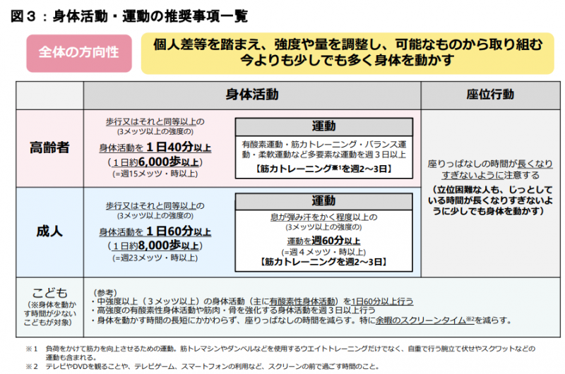 11月24日の「健康づくりのための身体活動基準・指針の改訂に関する検討会」において、「健康づくりのための身体活動・運動ガイド2023(案)」が発表されましたので、ご紹介いたします。