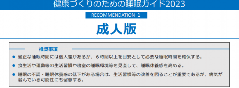 厚生労働省から「健康づくりのための睡眠ガイドライン2023」が公表されましたので、ご紹介いたします。