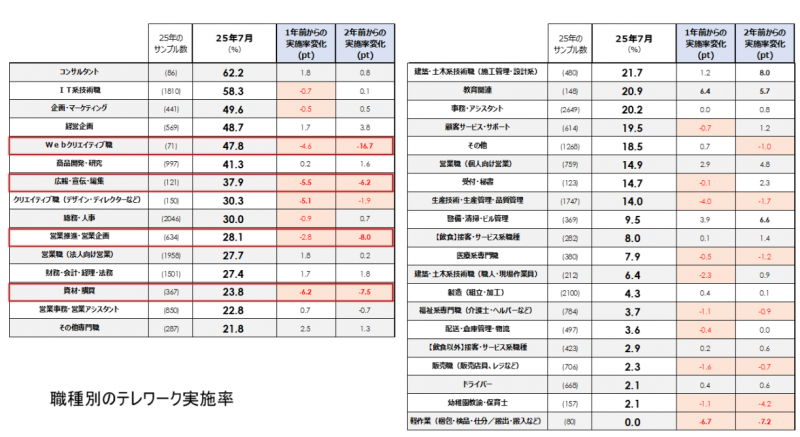・テレワーク実施率が高い職種はコンサルタント