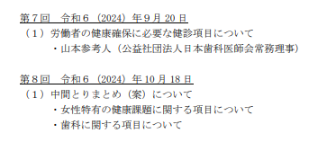 「労働安全衛生法に基づく一般健康診断の検査項目等に関する検討会」の中間とりまとめ お知らせ2025年12月15日掲載 厚生労働省から、「労働安全衛生法に基づく一般健康診断の検査項目等に関する検討会」の中間とりまとめが公表されていましたので、ご紹介いたします。一般定期健康診断にて、下記の問診項目が追加される予定だそうです。質問:女性特有の健康課題(月経困難症、月経前症候群、更年期障害など)で職場において困っていることがありますか。① はい、② いいえ 「労働安全衛生法に基づく一般健康診断の検査項目等に関する検討会」の中間とりまとめ